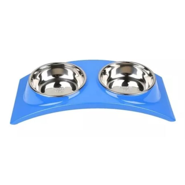 Comedero/Bebedero de melamina Doble curvo – S al L – Azul