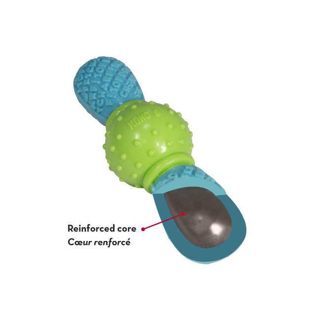 Kong Core Strength Juguete Dental está fabricado para durar y seguro que aporta emoción, al tiempo que proporciona prolongadas sesiones de juego. El núcleo duradero con múltiples capas elaborado por KONG resiste sesiones de masticación de larga duración, mientras que satisface los instintos naturales de masticación del perro. Las capas reforzadas en el núcleo añaden una resistencia adicional, convirtiéndolo en el juguete ideal para los masticadores potentes. Las palabras con textura del exterior añaden diversión y tienen la ventaja adicional de limpiar la dentadura y las encías. Ideal para el juego en solitario y para actividades de lanzar y recoger interactivas, KONG CoreStrength seguro que será una delicia para los perros más juguetones.