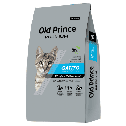 Old Prince Premium para Gatito: ESTIMULA EL ÓPTIMO CRECIMIENTO. El contenido apropiado de minerales, vitaminas y nutrientes seleccionados colabora con un desarrollo saludable. REFUERZA EL SISTEMA INMUNE. El agregado de prebióticos, vitaminas, antioxidantes y bras naturales ayudan a mantener fuertes las defensas naturales.