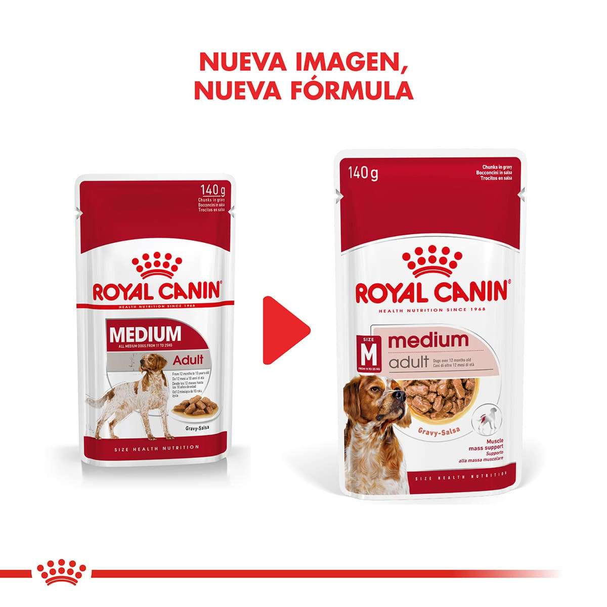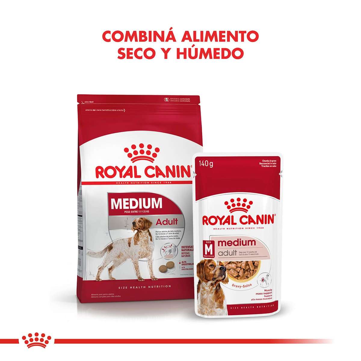 Royal Canin Medium Adulto es un alimento húmedo para perros adultos de talla mediana (de 11 a 25 kg). Desde los 12 meses hasta los 10 años de edad.