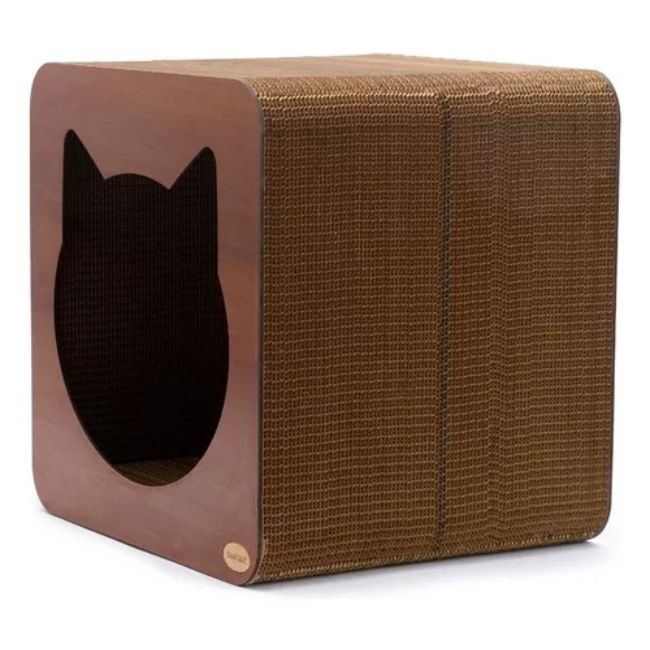 Rascador Rústico Para Gato de Cartón Casa Cara de Gato