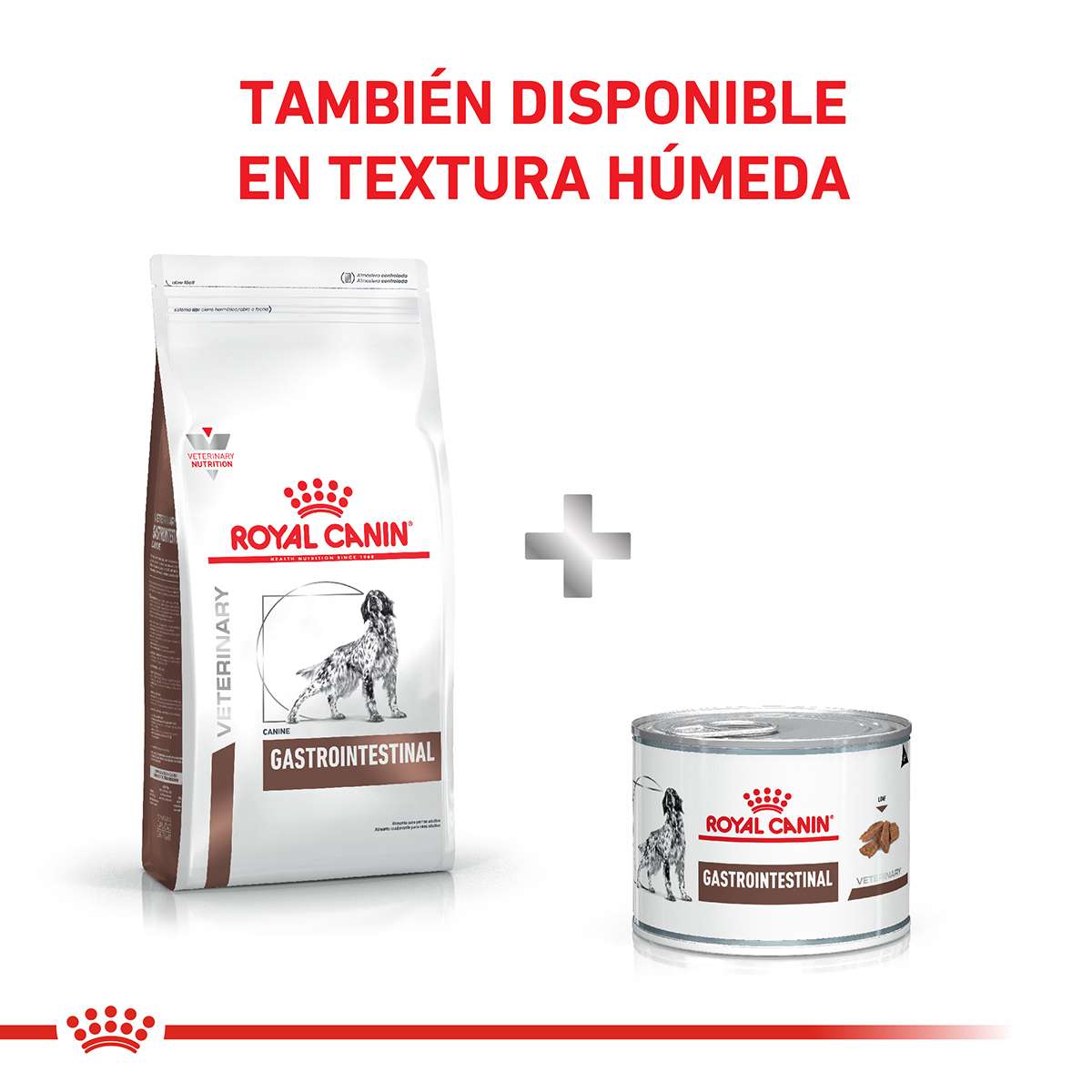 Royal Canin Gastrointestinal Canine contribuye a lograr una máxima seguridad digestiva y a disminuir la carga gastrointestinal; y cubre los requerimientos energéticos del perro, aportando una densidad energética óptima.