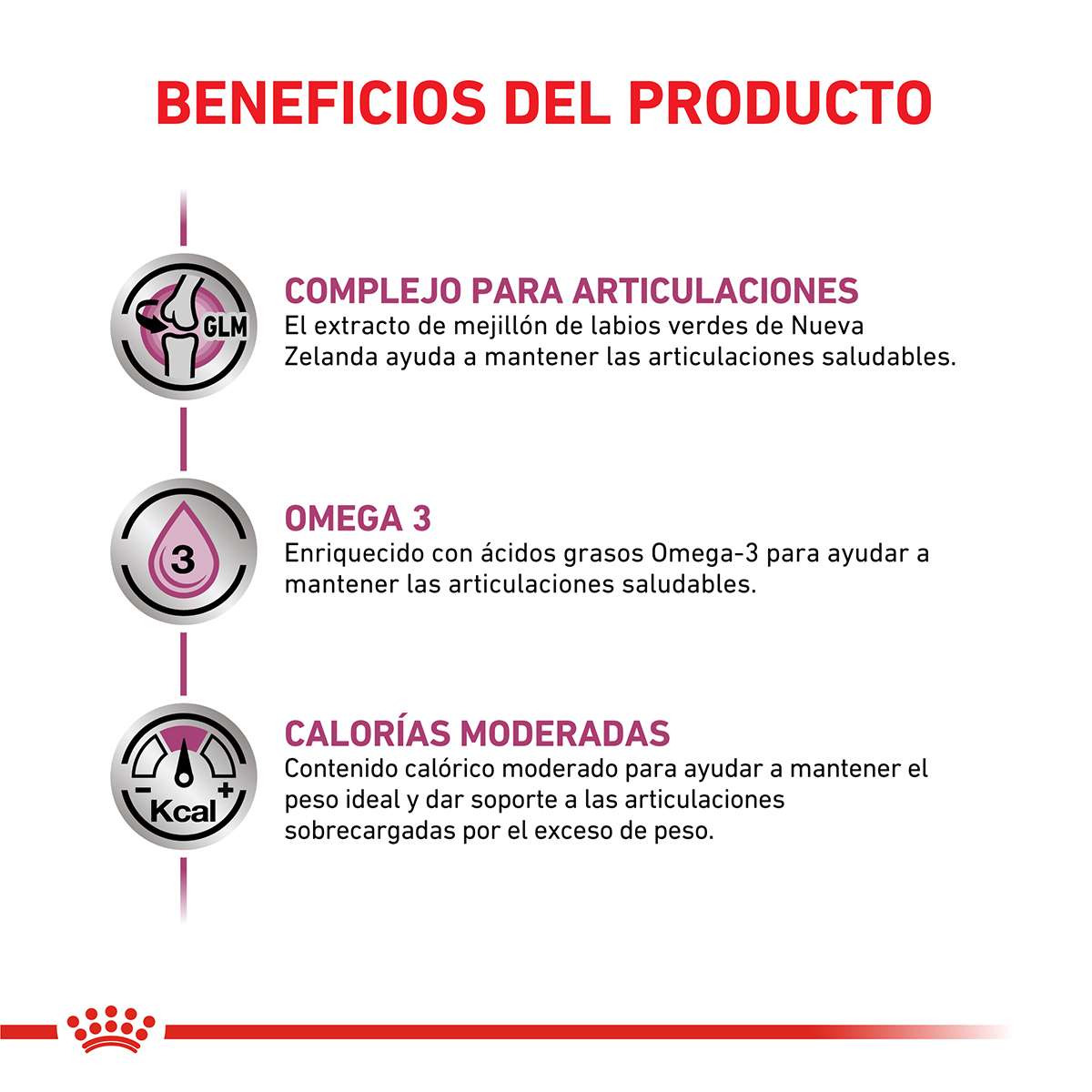 Alimento para perros adultos formulado para contribuir al mantenimiento de la salud articular, como soporte nutricional en enfermedades articulares y en recuperación de cirugías ortopédicas.