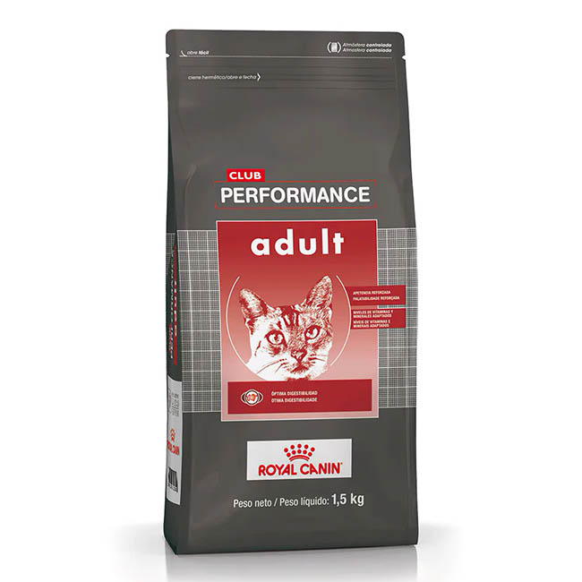 Royal Canin Club performance Feline Adulto es un aliemento balanceado completo para gatos adultos. Brinda una optima digestibilidad, apetencia reforzada y vitaminas y minerales adaptados.