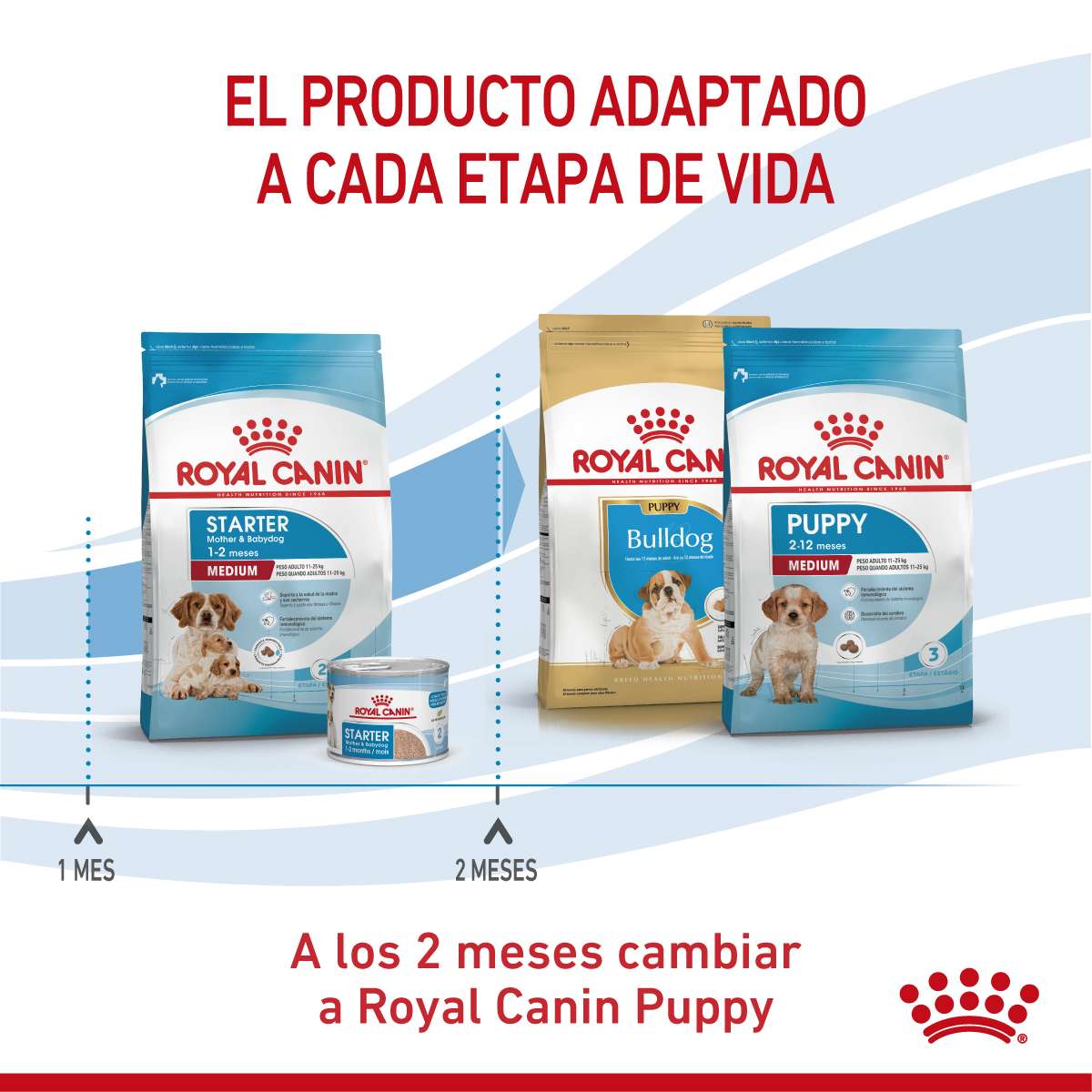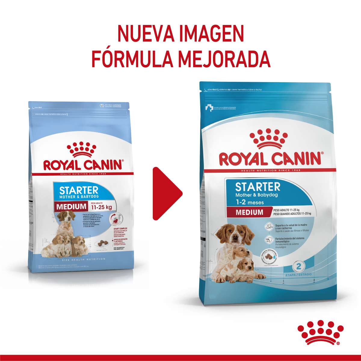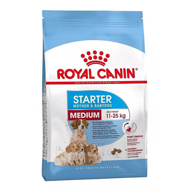 Alimento balanceado completo para perras y cachorros de talla mediana (de 11 a 25 kg). Para perras en fase final de gestación y período de lactancia, y cachorros en el período de destete hasta los 2 meses de edad. Royal Canin Medium Starter Mother & Babydog brinda soporte a la madre durante la gestación y la lactancia ofreciendo un alimento rico en energía y nutrientes esenciales.